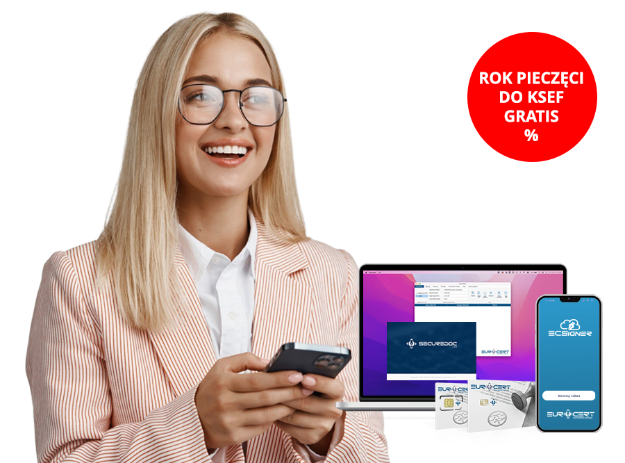 * Najniższa cena w Polsce za rok dotyczy kwalifikowanej pieczęci elektronicznej w chmurze ECSigner od EuroCert na okres 3 lat wraz z kosztami weryfikacji tożsamości za pomocą podpisu kwalifikowanego na podstawie porównania cen netto publicznie dostępnych ofert wybranych dostawców z Polski, stan na dzień 29.12.2025.