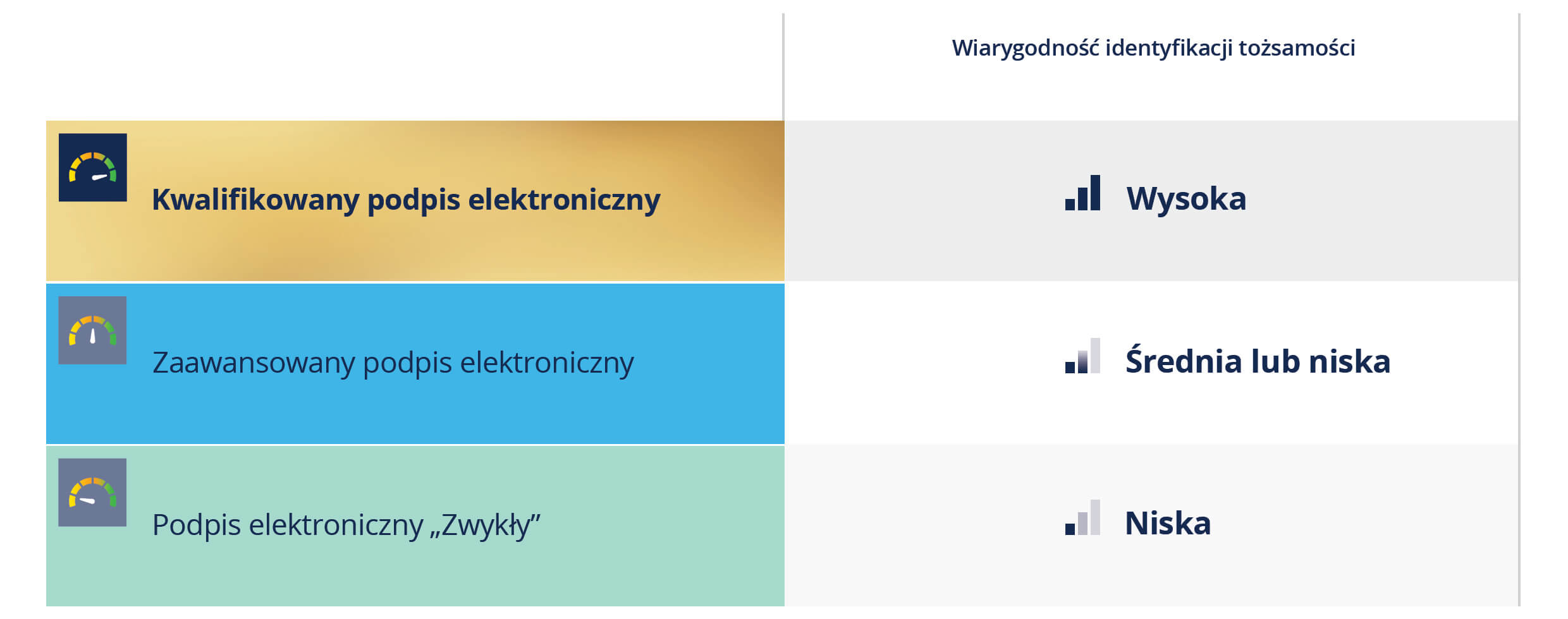 Warto wiedzieć, że rozporządzenie eIDAS wyróżnia 3 poziomy identyfikacji elektronicznej w odniesieniu do e-podpisów. Są to poziomy bezpieczeństwa niski, średni i wysoki. Oznacza to, że pod uwagę jest tutaj brana procedura wydawania konkretnego podpisu, w tym proces potwierdzenia tożsamości użytkownika.