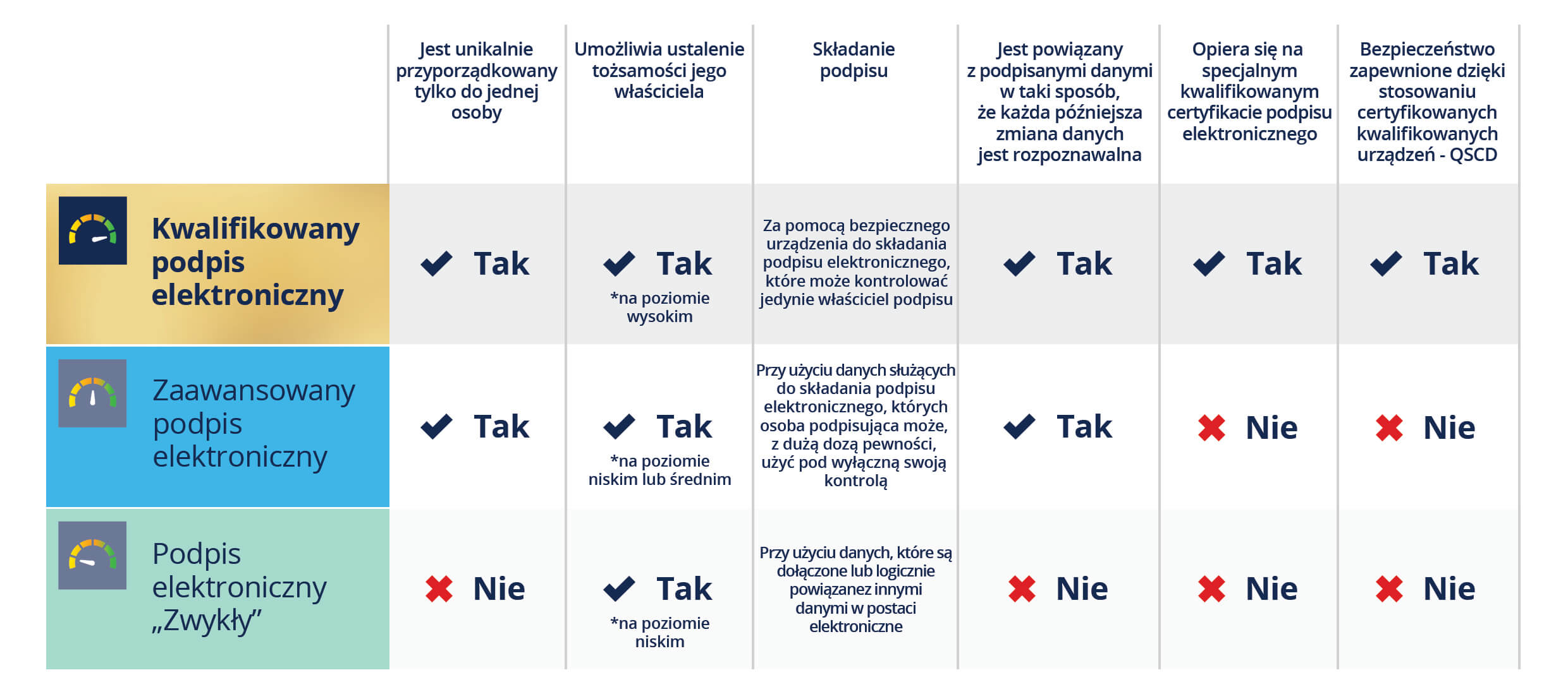 Porównując wszystkie podpisy elektroniczne warto zrobić to w oparciu o konkretne kryteria. W zrozumieniu różnic pomiędzy poszczególnymi podpisami, warto przeanalizować infografiki przygotowane przez Centrum Certyfikacji EuroCert.